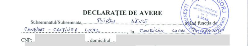 Birău vine la primărie din postura de fost consilier local, cu o avere specifică unei familii de dascăli. Primarul a moștenit un apartament în localitate, de 65 de mp.
