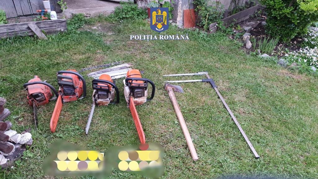În urma perchezițiilor, polițiștii au indisponibilizat trei autoutilitare destinate transportului de material lemnos, un tractor și au ridicat, în vederea continuării cercetărilor, două ciocane silvice și o marcă silvică artizanală, șase motofierăstraie, un calculator și 28.000 de lei.