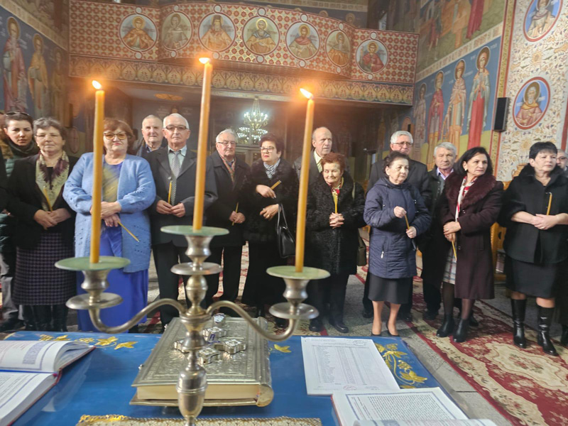 Festivitatea, pusă la punct de municipalitate, a început la miezul zilei cu o slujbă religioasă la catedrala din centrul orașului, doamnele și domnii declarându-se vădit emoționați. Aceștia au primit nu doar binecuvântarea preoților care au oficiat slujba, ci și flori din partea primarului Cosmin Morega, dar și a rudelor. „Am dori să avem și noi vârsta dumnealor și să apuncăm 50 de ani de căsătorie. Nu suntem nici la jumătate”, a mărturisit o rudă a unui cuplu. Un alt cuplu a primit un buchet din trandafiri de culoare roșie, galbenă și albastră, explicația celor care l-au oferit ținând de semnificația zilei de ieri. „Sunt flori special cumpărate pentru părinții noștri. E ziua de Dragobete și am considerat că așa putem să marcăm și sărbătoarea, dar și aniversarea celor 50 de ani de căsnicie a părinților noștri”, a spus fiul unuia dintre sărbătoriți.