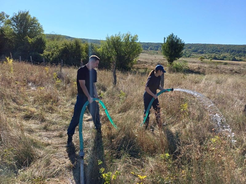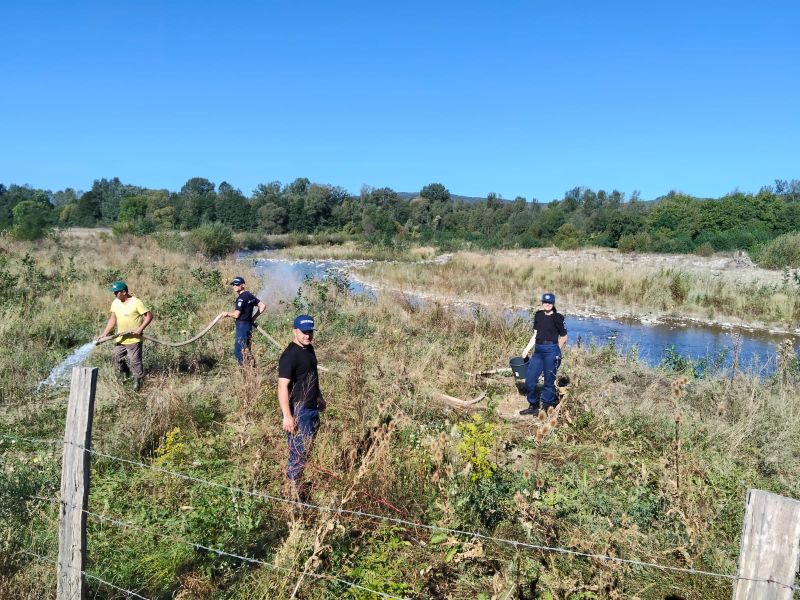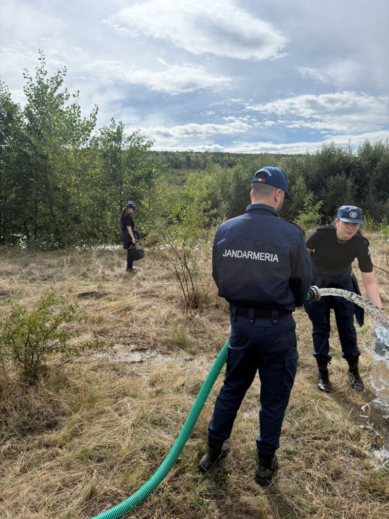O nouă acțiune de udare a puieților plantați pe râul Gilort, în localitatea Bengești-Ciocadia, a beneficiat și de participarea jandarmilor gorjeni.