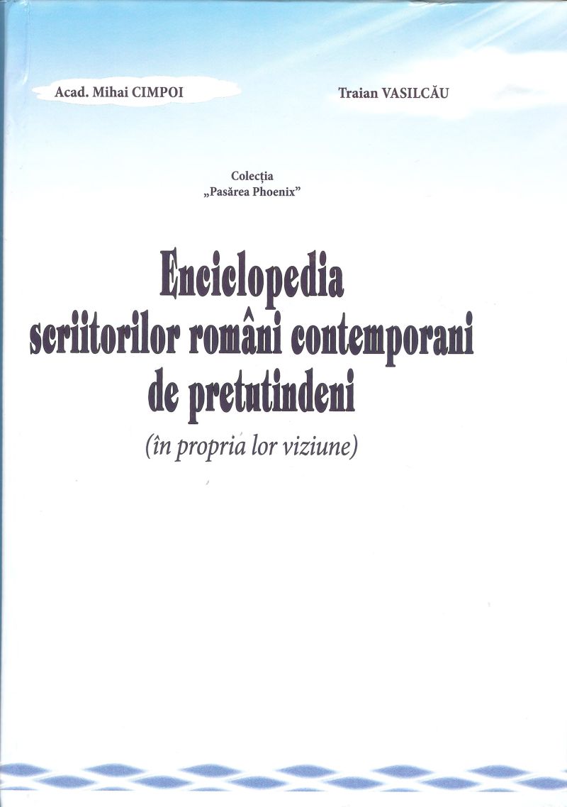 Acad. Mihai Cimpoi şi scriitorul Traian Vasilcău au coordonat „Enciclopedia scriitorilor români contemporani (în propria lor viziune)” în colecţia emblematică pentru Republica Moldova „Pasărea Phoenix”, numărând 1200 pagini. După cum apreciază Traian Vasilcău este „o Columnă a Culturii Româneşti”, dedicată Centenarului Marii Uniri. Printre recenzenți i-am descoperit pe tovarăşii mei de transmodernism, Theodor Codreanu, Adrian Dinu-Rachieru, Alexandru Surdu şi Radu Cârneci. I-am aflat totodată pe prietenii mei dragi, Horia Bădescu, Constanţa Buzea, Nicolae Dabija, Vasile Tărâţeanu, George Sorescu (conducătorul tezei mele de doctorat), Irina Mavrodin, Dinu Săraru, Eugen Dorcescu. „Marele cerc al scriitorilor români incluşi în monumentala „Enciclopedie…” îi include şi pe gorjenii Aurel Antonie, Adrian Frăţilă, Ion Cepoi, Zenovie Cârlugea, Zoia Elena Deju, Nicolae Dragoş, George Drăghescu, Gheorghe Grigurcu, Florian Saioc, Laurian Stănchescu şi pe Lazăr Popescu, Spiridon Popescu şi Ion Popescu-Brădiceni, ca şi pe Alex Gregora şi Andrei Novac.