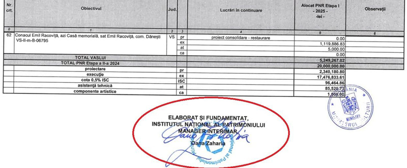 Bătaia de joc este cu atât mai mare cu cât, cu doar trei zile înainte de vizita la Târgu Jiu, pe 25 martie, aceleași doamne Intotero și Zaharia semnaseră ,,Programul Național de Restaurare – Etapa I – 2025”. Ghiciți ce sumă a fost alocată pentru Ansamblul Monumental ,,Calea Eroilor” în acest program! 1.000 de lei! O mie de lei pentru conservarea și restaurarea unei opere de artă de o valoare inestimabilă, un simbol național și universal.