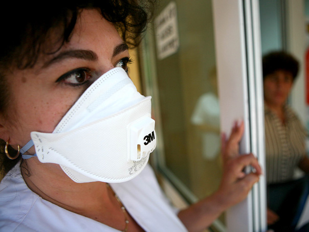 Un cadru medical, purtand masca de protectie, intra intr-o rezerva, in Spitalul "Matei Bals" din BUcuresti, miercuri, 27 mai 2009. Primul caz din Romania de gripa cu noul virus a fost identificat la o femeie din Bucuresti, revenita recent din SUA, in 23 mai, aceasta fiind internata la Institutul "Matei Bals" din Capitala. Romania figureaza, oficial, pe lista tarilor in care virusul A H1N1 este confirmat. OCTAV GANEA / MEDIAFAX FOTO