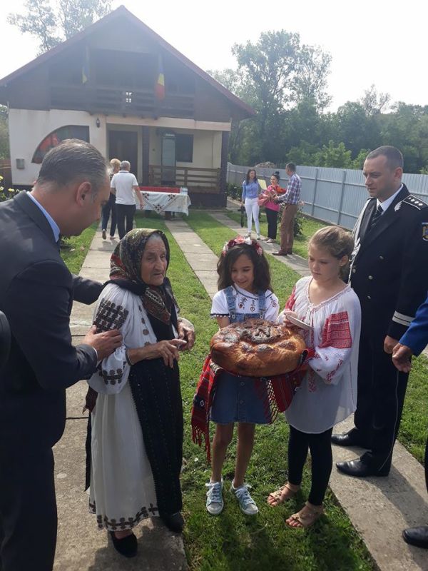 ”Aici, lângă mine, sunt toate structurile Ministerului Afacerilor Interne, care vor să vă facă o surpriză, pentru că 100 de ani, mai ales în 2018, când sărbătorim Centenarul Marii Uniri, nu face oricine”, i-a transmis prefectul Ciprian Florescu femeii din Ursați, oferindu-i flori, drapelul României, un tort și scrisoarea din partea ministrului de Interne.