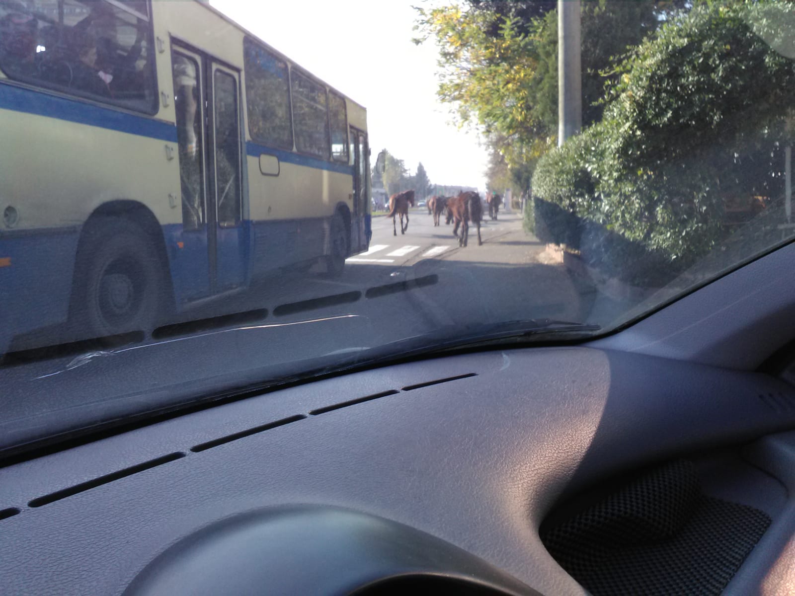 Unul dintre troleibuze a intrat cu greu în stație din cauza cailor împrăștiați pe șosea. În zonă nu era niciun agent de poliție, caii îndreptându-se nestingheriți către benzinăria situată pe strada Garofiței, spre garajul Transloc.