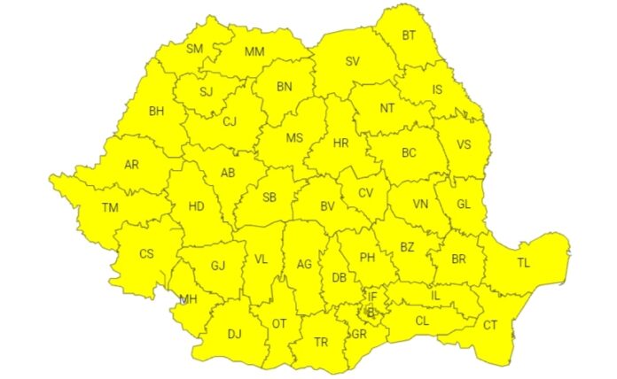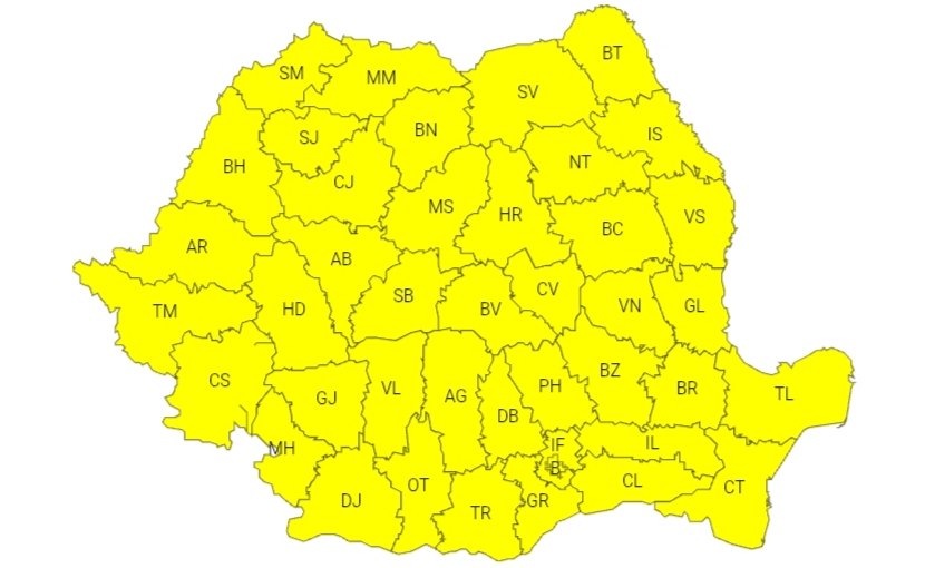Meteorologii au emis o atenționare de tip cod galben valabilă în toată țara, până diseară la ora 21:00.