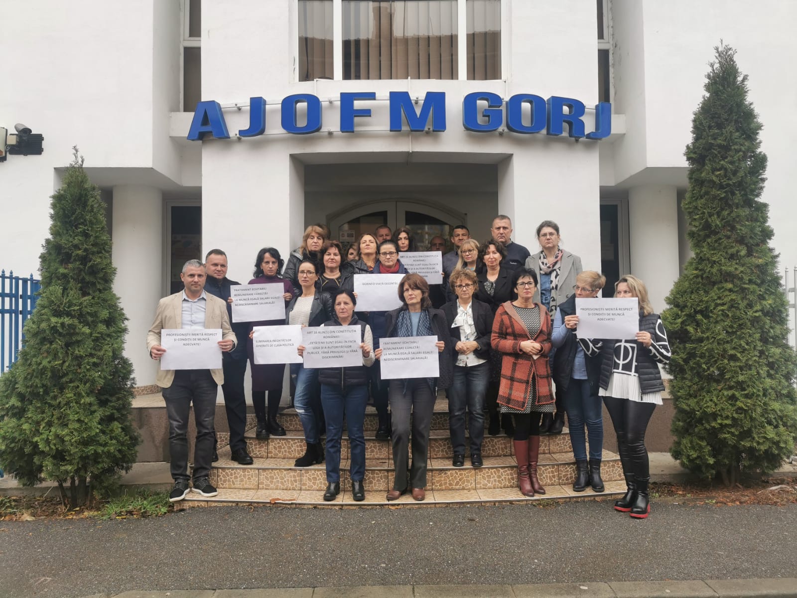 Funcționarii publici din cadrul AJOFM Gorj au protestat din nou astăzi, între orele 10.00-11.00. „Ne exprimăm în continuare nemulțumirea și solicităm condiții de muncă adecvate, număr de personal corespunzător volumului de activitate, eliminarea inechităților salariale din sistemul bugetar”, au transmis angajații AJOFM.