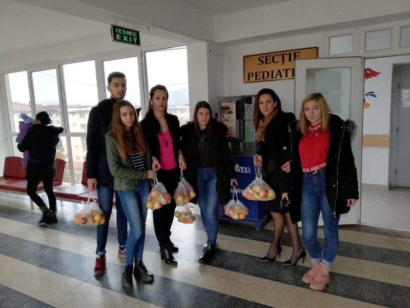 O sută de kilograme de fructe și legume, donate de elevi de la Palatul Copiilor și Liceul Tehnic Motru, spitalului municipal