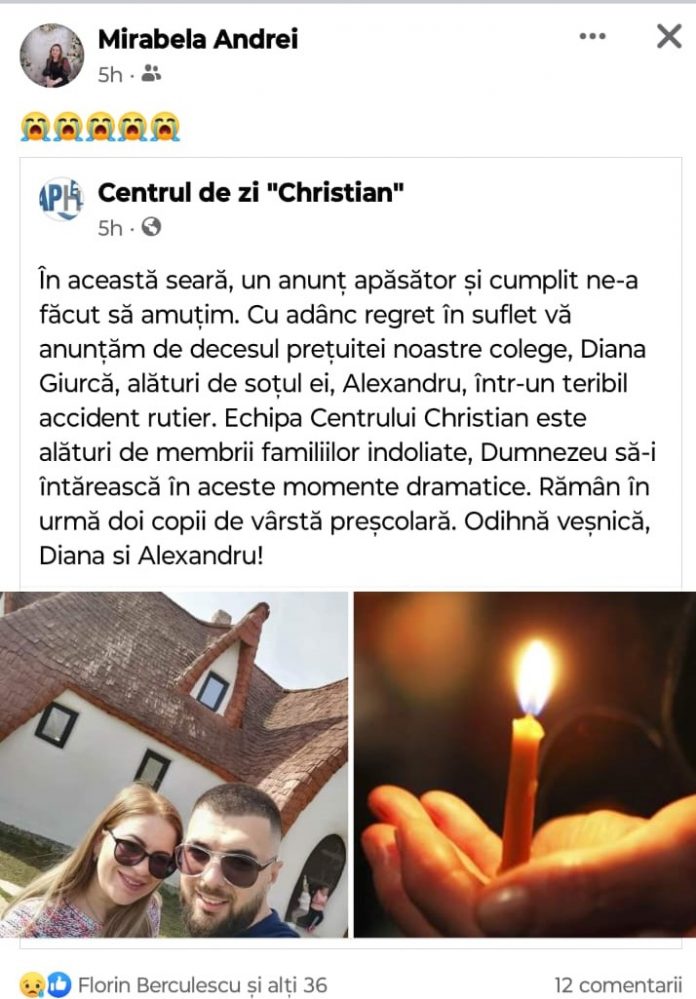 Doi tineri, soț și soție, și-au pierdut viața într-un groaznic accident care s-a produs pe autostradă, azi noapte. Diana Giurcă lucra la Centrul de zi ”Christian”. Cei doi aveau doi copii minori.