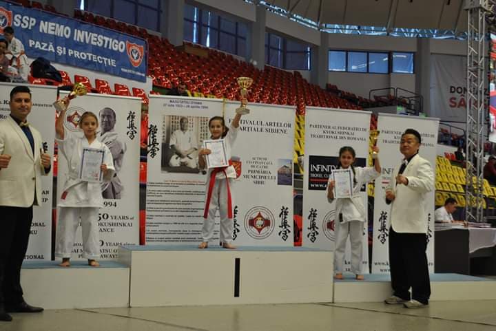 De la Cupa Internationala Mas Oyama de la Sibiu ne-am întors duminică, în 24 noiembrie cu 6 locuri 1, 12 locuri 2 și 20 locuri 3, obținute la probele înscrise în concurs: kata, kata team și kumite. Am deplasat la această competiție cu tradiție de karate kyokushin, organizată de Musashi Dojo Sibiu, prin Horațiu Adrian Neagoie, Președinte al Federației de Kyokushinkai Tradițional din România, un lot format din 21 de sportivi cu vârste cuprinse între 6-17 ani, însoțiți de 2 instructori, 3 arbitrii și de o parte din părinți.