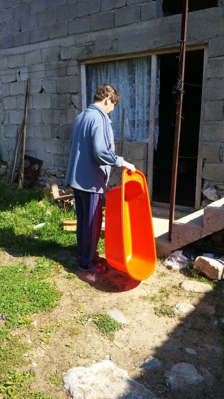 „Să îi fac baie în cădița mică e tot mai greu pentru că el a crescut și nu mai are loc. Stăm în casa asta veche și ne uităm la ce începusem să construiesc împreună cu soțul meu. Din păcate, acum șapte ani a murit prima din cele două fete pe care le aveam, a alunecat de pe o piatră într-un râu din Spania și s-a înecat. Apoi, după un an, s-a prăpădit și soțul, care a făcut cancer la colon, iar acum, în februarie, a murit și fiica mai mică pe care o aveam și care mă mai ajuta cu bani, că așa am reușit de am pus acoperișul. După ce a murit ea chiar am rămas fără orice posibilitate de a mai face altceva în afară de a trăi și a avea grijă de băiatul meu. El e singurul pe care îl mai am. Eu sunt însoțitorul lui și cu banii pe care îi iau, plus ce primește el, pentru traiul de zi cu zi ne descurcăm. Nu am cum însă să îi fac o baie în condiții omenești și de lucrul acesta îmi pare cel mai rău”, spune mama lui Toni.