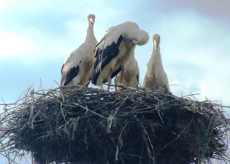 Spre surpriza mea, cuiburile în cea mai mare a parte a lor erau pline de puii ce aşteptau (la ora prezenţei mele acolo) întoarcerea adulţilor de pe locurile mlăştinoase din împrejurimi unde aceste înaripate îşi pot găsi facil hrana pentru ele cât şi pentru puii care acum erau mărişori cu poftă de mâncare pe măsură.
