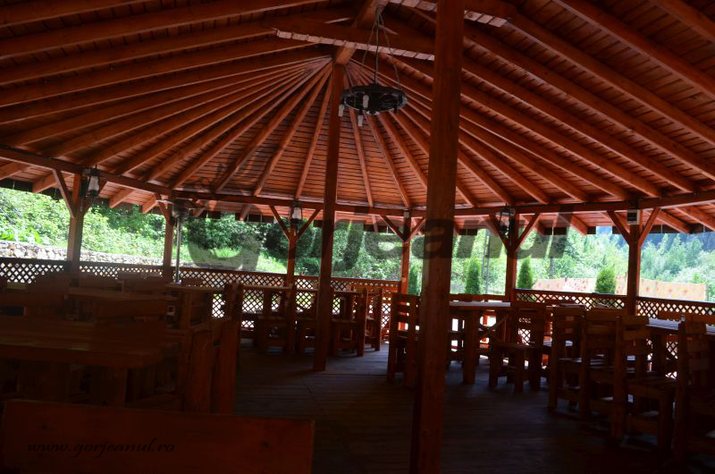 păstrăv afumat, prăjit sau la grătar, tocană de miel, dar și alte preparate gorjenești care se pot găti la cuptorul rustic sau pe grătar. După preferințe aici se pot servi și băuturi tradiționale.Pensiunea este situată
