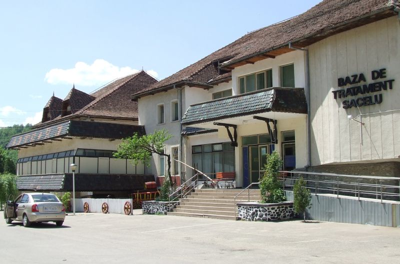 ameliorarea unor boli. Romanii după cucerirea Daciei au amenajat întreg perimetrul construind aici terme, precum şi un castru ale cărui ruine se mai pot vedea şi în ziua de azi. Tot pe aceste locuri se mai pot vedea ruinele unor monumente închinate zeilor de către cei ce s-au tămăduit cu ajutorul apelor din zonă. Este păstrată chiar o inscripţie în piatră ce aminteşte că un cetăţean roman pe nume Marcus Tiberius s-a vindecat prin acţiunea binefăcătoare a apelor şi închina aceste izvoare zeilor Esculap şi Hygeea. Săcelu este menţionat cu numele de azi din secolul 17-18. Prin anul 1840 băile erau proprietatea lui