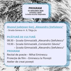 Un complex de manifestări intitulat „Când amintirile-n trecut încearcă să mă cheme…” va avea loc miercuri, 15 ianuarie 2025, la Târgu Jiu, prin care se dorește omagierea operei lui Mihai Eminescu cu ocazia Zilei Culturii Naționale.