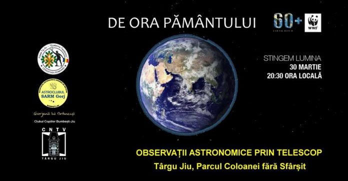 Organizația Națională Cercetașii României – Filiala Târgu Jiu „Ecaterina Teodoroiu“, Astroclubul SARM Gorj, Gorjenii lui Brâncuși și Clubul Copiilor Bumbești-Jiu vor marca „Ora Pământului“, în Parcul Coloanei fără Sfârșit. „30 martie, de la ora 20.30, stingem lumina și privim cerul prin telescop. Îi aşteptăm pe toţi târgujienii amatori de astronomie. Chiar dacă luminile vor fi stinse pentru numai o oră, observațiile astronomice prin telescop vor dura cât va fi nevoie“, a anunțat Marcel Jinca, coordonator Astroclub SARM Gorj.