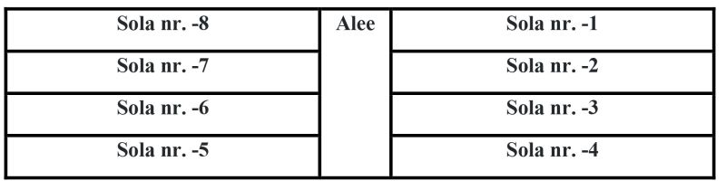 În cadrul asolamentului de 8 ani (cu 8 sole) astfel: în Sola nr – 1 fasolea, mazărea, şi bobul, în Sola nr – 2 tomatele, ardeiul şi vinetele, în Sola nr – 3 ceapa, usturoiul şi prazul, în Sola nr – 4 varza, conopida, brocoli, gulii, varza de Bruxelles, spanacul şi salata, în Sola nr – 5 cartofii (după culturi anticipate ca usturoi verde, ceapă verde, salată timpurie), în Sola nr – 6 castraveţi, dovlecei şi pepeni, în Sola nr – 7 morcovi, pătrunjel, păstârnac, ţelină, sfeclă şi ridichi, iar în Sola nr – 8 porumb pentru floricele sau zaharat (pentru fiert).