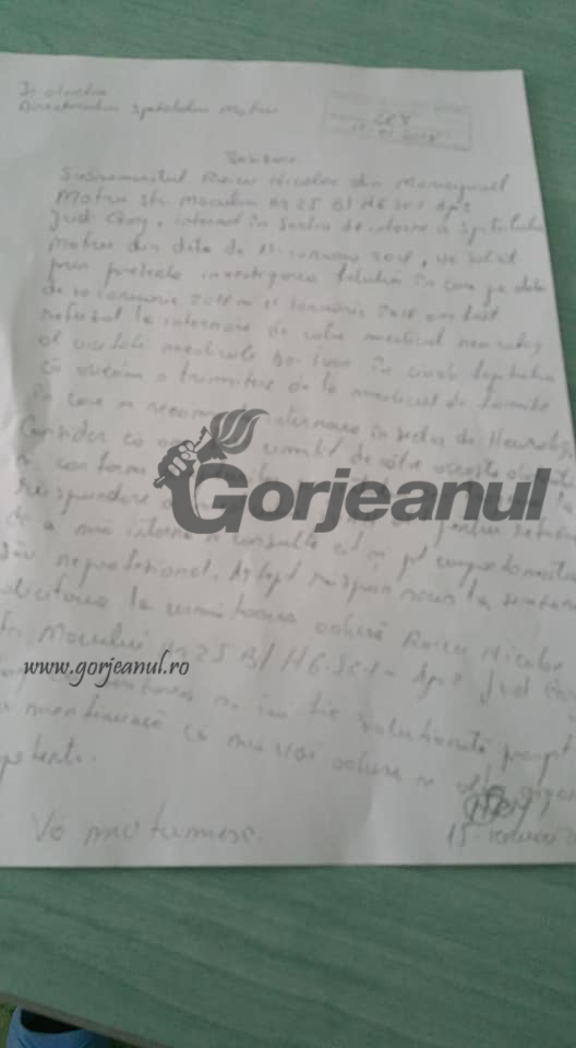 Un bărbat în vârstă de 54 de ani, care s-a adresat pe 10 ianuarie la urgențe în cadrul Spitalului Motru, acuzând dureri în zona spatelui și faptul că nu își mai putea mișca piciorul drept, susține că ar fi fost refuzat la internare de către o doctoriță a unității medicale din municipiu. Asta, deși pacientul spune că avea trimitere de la medicul de familie către Neurologie, trimitere aflată la dosarul său medical. Pacientul spune că ar fi fost uitat la urgențe peste 12 ore de către medicul neurolog Ivan, care i-a transmis însă a doua zi, că îi refuză internarea pe secția sa, pe motiv că ar fi un bolnav cu prea multe probleme, acesta fiind și alergic plurimedicamentos. Omul a fost internat, în final, la Interne, după ce a intervenit la managerul spitalului. Ieri, pacientul încă internat în Spitalul Motru, a cerut în scris conducerii unității medicale să ia măsuri cu medicul neurolog, care l-a umilit, refuzându-i internarea.