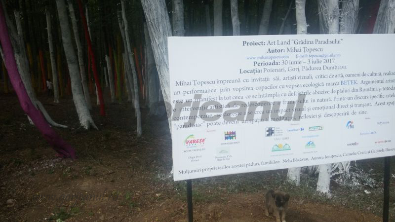 Proiect inedit al artistului plastic Mihai Țopescu, câteva sute de copaci dintr-o pădure din apropiere de Transalpina fiind vopsiți de acesta în weekendul care tocmai a trecut. În ajutorul său au venit și voluntari, dar și sponsorul care a oferit vopseaua, femeia de afaceri Lucreția Pârvulescu fiind cea care l-a ajutat pe maestru cu peste o tonă și jumătate de vopsea. În doar două zile pădurea aflată între Poienari și Alimpești, pe DN 67, și-a schimbat complet înfățișarea, mai ales că au fost aleși copacii situați în apropierea șoselei. Intitulat “Grădina Paradisului”, artistul a reușit să realizeze aici un loc în care culorile sunt îmbinate cu verdele naturii, totul putând fi interpretat de fiecare așa cum dorește. Țopescu spune că a dorit să tragă un semnal de alarmă cu privire la defrișările abuzive care se produc în pădurile României, speranța sa fiind ca măcar copacii pe care i-a vopsit acum să scape cu viață.
