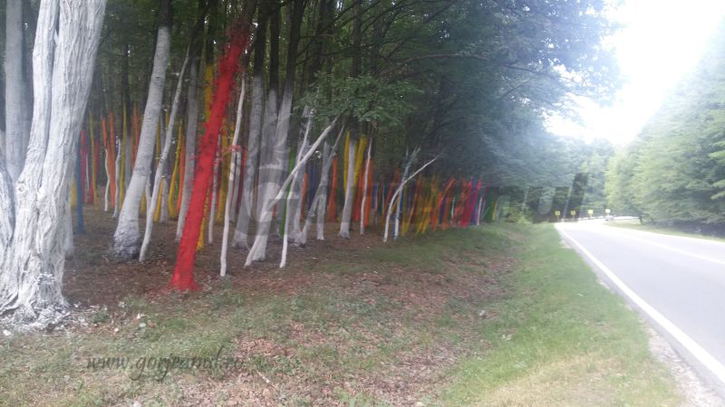 “Nu am venit aici cu o intervenție violentă în natură, cu un manifest violent din stradă pentru a nu mai tăia pădurile. E un manifest artistic, mult mai puternic decât cel cu lozinci în stradă. Am adus oameni aici, am adus culoare, iar oamenii înțeleg că avem nevoie de natură și că nu trebuie să o distrugem. Vor fi cârcotași care vor spune că puteam face altceva cu vopseaua sau dacă vor muri copacii. Da, se putea face și altceva cu vopseaua. Eu am venit cu această manifestare artistică în care s-au implicat și colegi de-ai mei din țară și străinătate și am creat acest colț de rai. Fiecare descoperă aici natura. Indiferent de unghiul în care privești descoperi altceva, alte tablouri. Sunt vreo 600 de copaci și în funcție de cum te miști descoperi altceva”, spune Mihai Țopescu.