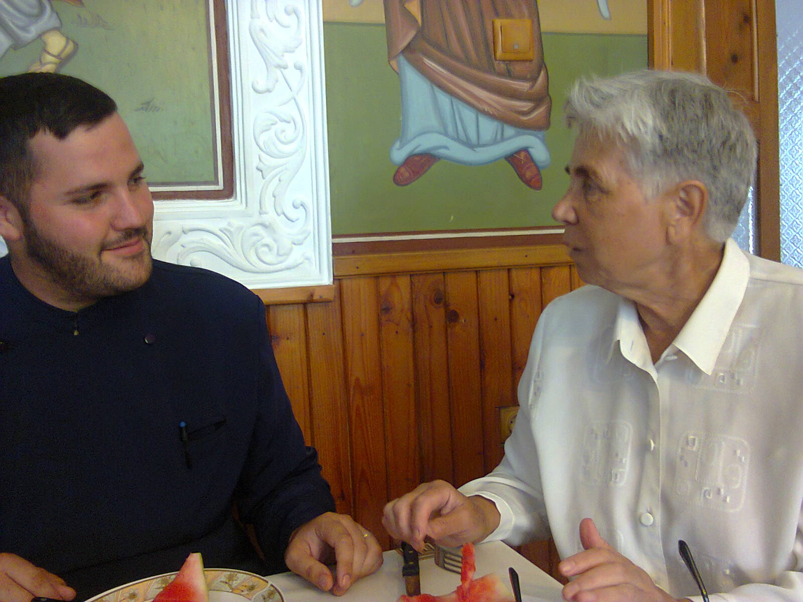 -M.B. Aici la această mănăstire nu, dar, am mai fost la Mănăstirea Dealu Mare, la Maica Stareţă Pahomia! Pentru că astăzi, la parastasul Maicii Stareţe Marina, am insistat ca să vină şi Maica Stareţă Pahomia, pe care o stimez şi o iubesc tare mult!