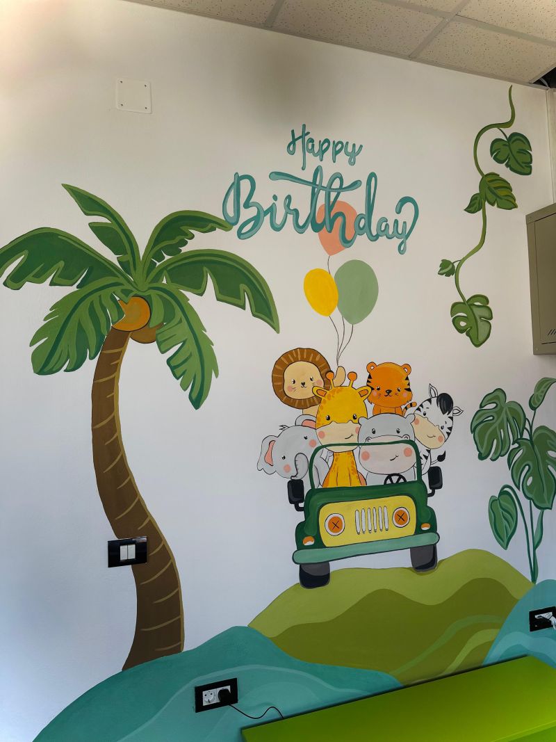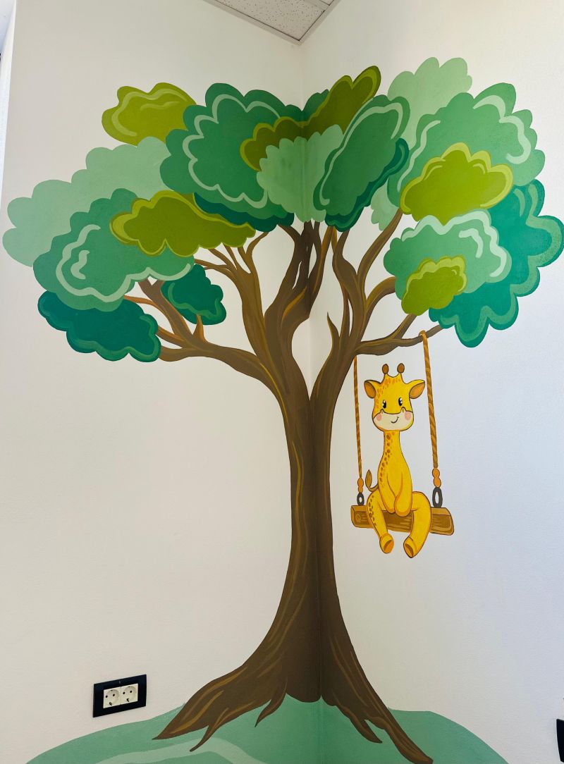 Ea este un om cu adevărat dedicat, pentru care expresia <<lasă că merge și așa>> pur și simplu nu există. Am pictat camera de party în tematica unei jungle, dar adevărata provocare a fost un perete impresionant de 20 de metri din zona parcului gonflabil – cea mai mare lucrare pe care am realizat-o până acum.