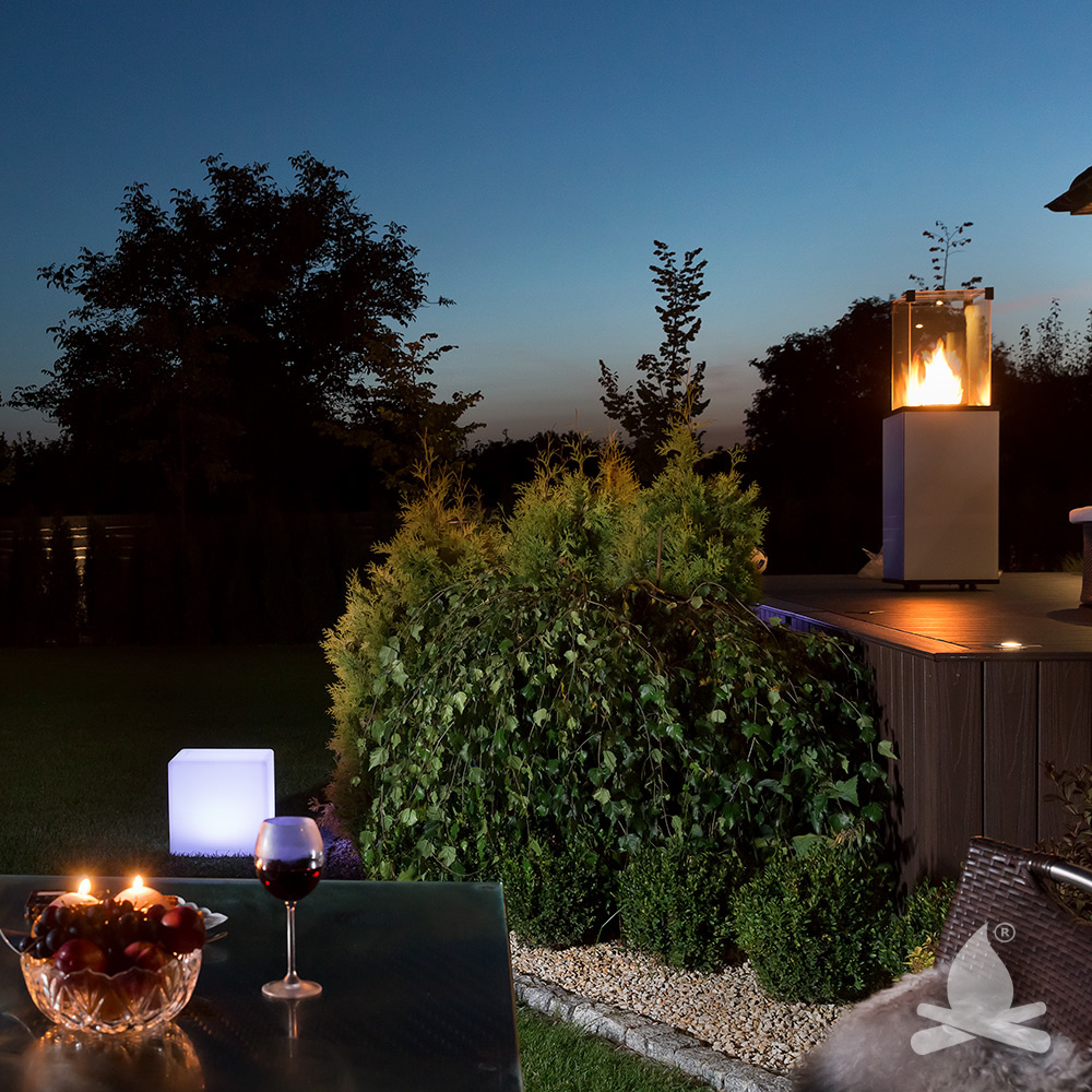 Așadar, pentru a alunga răcoarea nopților târzii și a te putea bucura neîntrerupt de povești și bună dispoziție, afară sub cerul înstelat, acest tip de șemineu inedit reprezintă soluția practică și elegantă pentru activități în aer liber, în grădina casei tale sau pe terasa unui restaurant. Șemineele de exterior sunt alternative elegante de încălzire pe terasă, în curte, foișor sau în grădină pentru a crea o atmosferă unică. Arzătorul special conceput cu foc natural este controlat printr-un sistem care va permite să reglați înălțimea flăcării. Acest tip de semineu este deosebit de sigur, soluțiile inovatoare utilizate garantând securitate 100%! Protecția suplimentară este gândită împotriva contactului nedorit din partea celor mai tineri membri ai familiei (copii, bebeluși) sau a animalelor de companie.