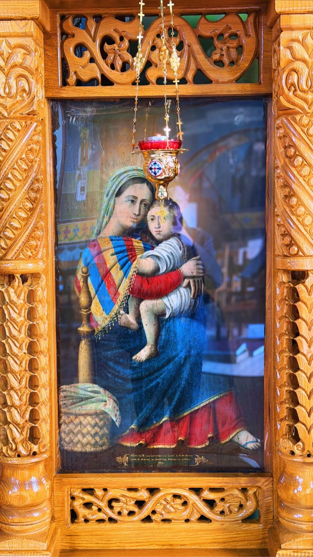 Icoana Maicii Domnului a fost așezată în baldachin datorită implicării personale a lui Nicolae Glăvan, fost epitrop al bisericii, care a rămas un devotat păstrător al valorilor spirituale și tradiției locale.