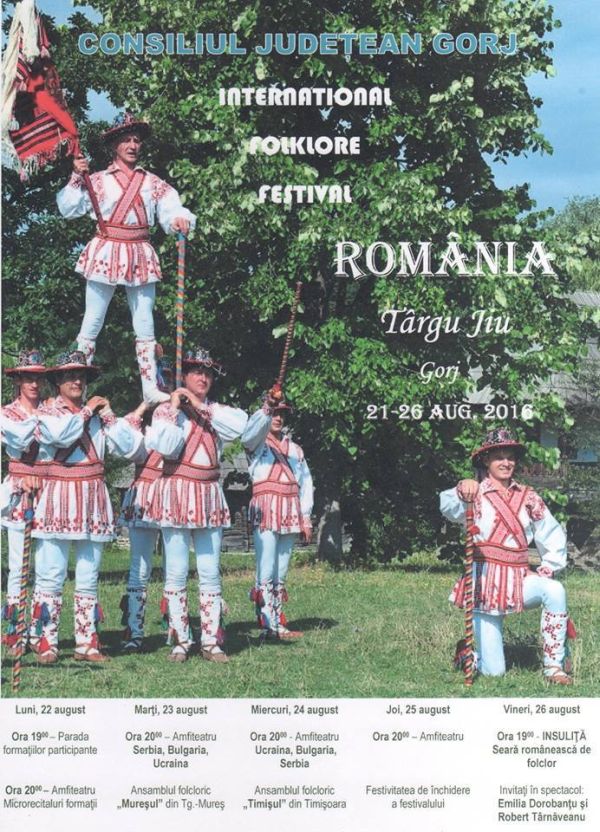 Cea de-a XIV-a ediţie a Festivalului Internaţional de Folclor se desfăşoară în perioada 21 – 26 august, la Târgu-Jiu. Evenimentul a debutat ieri, în acest an fiind prezente în orașul lui Brâncuși ansambluri din țări precum Bulgaria, Serbia, Ucraina şi România. În fiecare seară, iubitorii de folclor sunt așteptați în centrul municipiului nostru pentru a participa la spectacolele susținute de ansamblurile din străinătate și din țară.