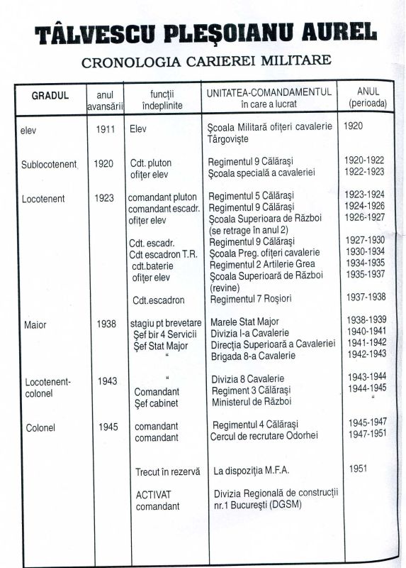A descrie în mai multe cuvinte activitatea de luptă a Lt.colonel Tâlvescu Pleşoianu Aurel este o imposibilitate. Singura definiţie pentru a caracteriza omul socotesc că este cea mai nimerită: “Soldatul nr.1 al unităţii sale.”