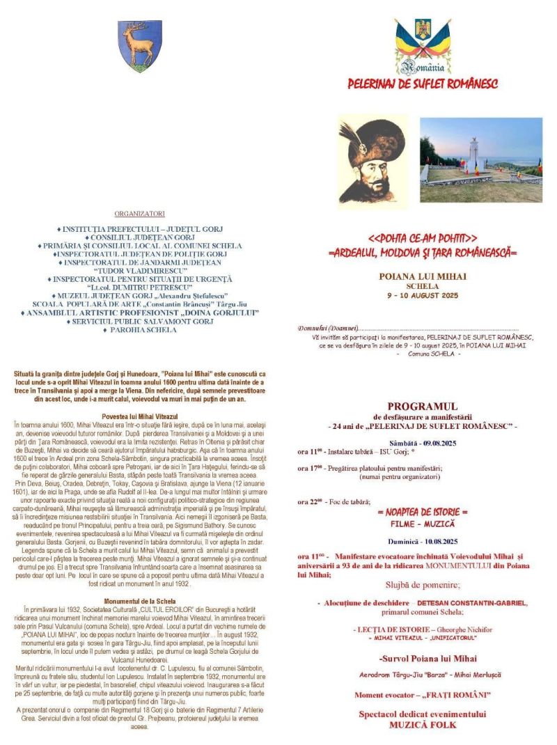 În fiecare vară, în comuna Schela din județul Gorj, tradiția prinde viață în Poiana lui Mihai, un loc de legendă, unde istoria și natura se împletesc într-un pelerinaj dedicat memoriei marelui voievod.
