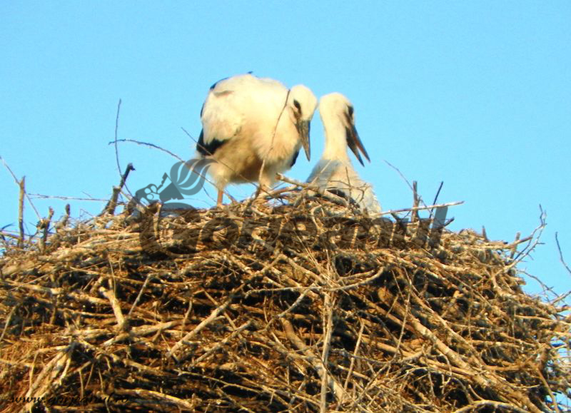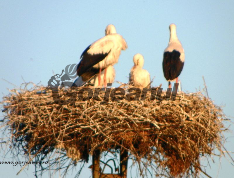 în cuiburile plasate pe stâlpii electrici, şi unde spre lauda lor lucrătorii montaseră un fel de grilaje pentru ca odată construite cuiburile să nu încurce distribuţia curentului electric în zonă. Spre surpriza mea cuiburile în cea mai mare a parte a lor erau pline de puii ce aşteptau (la ora prezenţei mele acolo) întoarcerea adulţilor de pe locurile mlăştinoase din împrejurimi (unde chiar din primăvară îmi exprimasem opinia că aceste înaripate îşi pot găsi facil hrana pentru ele, cât şi pentru puii, care acum erau mărişori cu poftă de mâncare