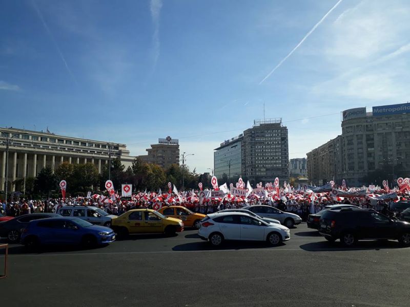 Federația SANITAS a organizat joi, 19 octombrie, în Piața George Enescu din Capitală, un miting de protest față de tergiversările practicate de guvernanți privind problemele cu care se confruntă sănătatea și asistența socială din România, conform unui comunicat al Federației. Mitingul a fost urmat de un marș de protest către Piața Victoriei, desfășurat în intervalul orar 12:00 — 14.00 pe traseul Piața George Enescu — Bulevardul Gheorghe Magheru — Piața Romană — Piața Victoriei. La acest protest au participat și reprezentanți ai Sindicatului SANITAS Gorj.