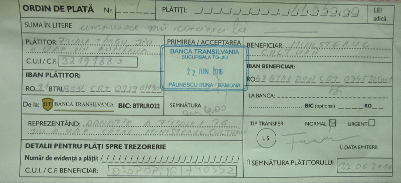 S-a obținut în urma vânzării lucrărilor de artă suma de 11 050 de lei, care a fost depusă miercuri, 22 iunie 2016, în contul indicat de Ministerul Culturii, prin Banca Transilvania, RON – RO48BTRLRONCRT0345325001. Mulțumim pe această cale tuturor persoanelor fizice și juridice, conducerii ARTEGO SA, Asociației Rotary Târgu Jiu, conducerii Primăriei Târgu Jiu, conducerii CJG și a Spitalului Județean de Urgență Tg Jiu, pentru contribuția deosebită la reușita acestui eveniment desfășurat pentru o cauză nobilă”, au transmis reprezentanții Filialei Târgu-Jiu a UAP România.