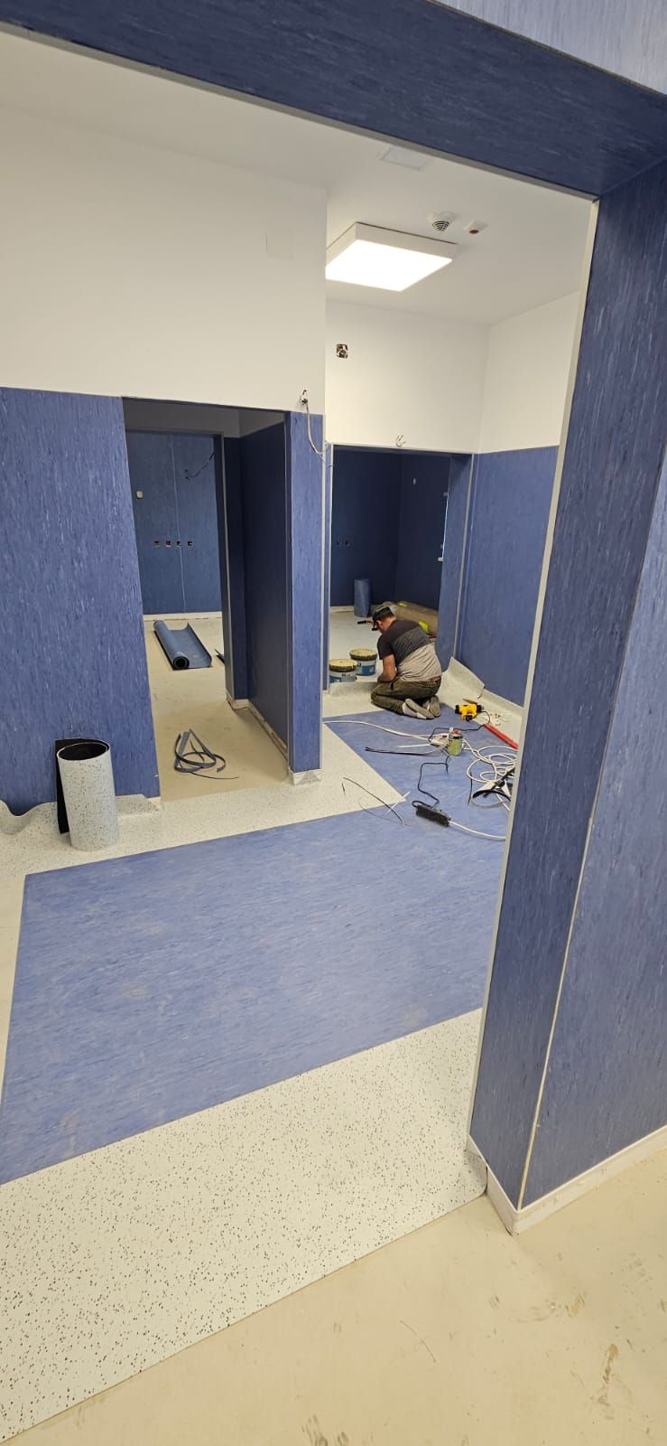 Pavimentul existent, un covor PVC, este deteriorat pe anumite porțiuni și necesită înlocuire. În plus, în grupurile sanitare, faianța și gresia au rosturi care nu mai corespund normelor actuale, iar unele plăci sunt fisurate sau chiar lipsesc complet.