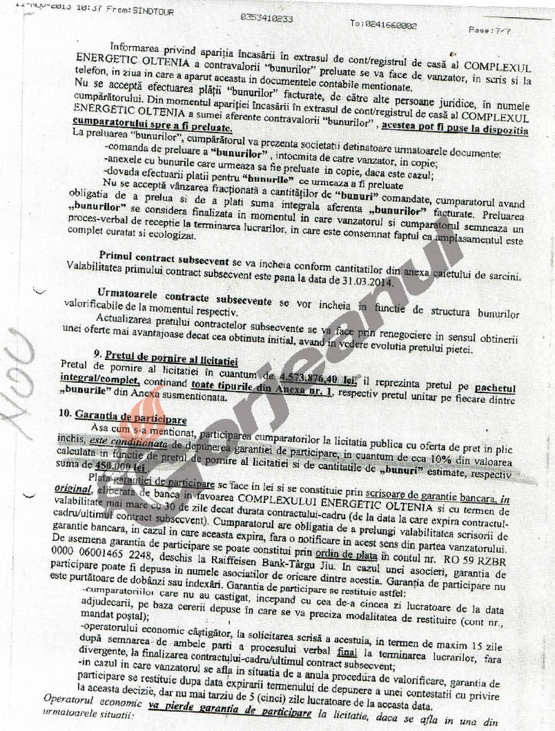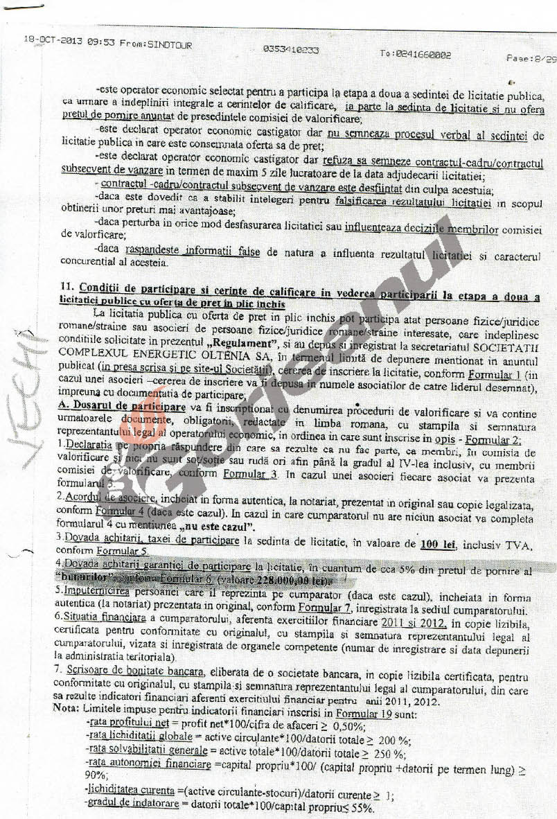 Modificările nu se opresc însă la garanţie, ci continuă cu impunerea pentru participanţii la licitaţie care, brusc, trebuie să aibă punct de lucru în Gorj, şi o cifră de afaceri de 9.100.000 de lei pe ultimii trei ani. Astfel, dacă în vechiul caiet, pentru licitaţiile trecute rămase fără câştigător, se cerea ca fişa de informaţii generale să fie doar conform “Formularului 12, completat şi semnat de cumpărător, sau de asociat” în cel nou se adaugă “cerinţa minimă” adică cifra de afaceri, dar şi obligativitatea ca ofertantul să aibă punct de lucru pe teritoriul judeţului Gorj.