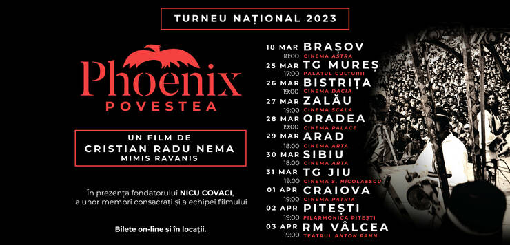 Turneul național al filmului „PHOENIX – Povestea” continuă și în 2023. După cele opt proiecții speciale din luna decembrie, filmul regizat de cineastul Cristian Radu Nema ajunge și la Târgu-Jiu.