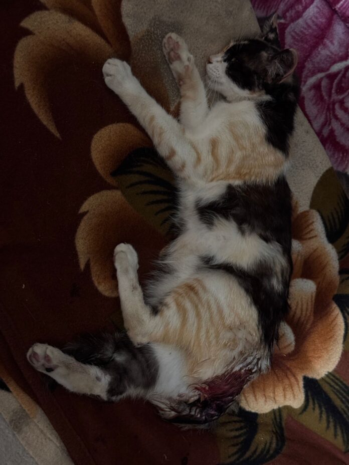 Animalul prezenta leziuni serioase la un picior din spate și suspiciuni de traumatisme la coloana vertebrală. Pisica a fost transportată de urgență la o clinică veterinară din Târgu Jiu, unde primește îngrijiri medicale de specialitate.