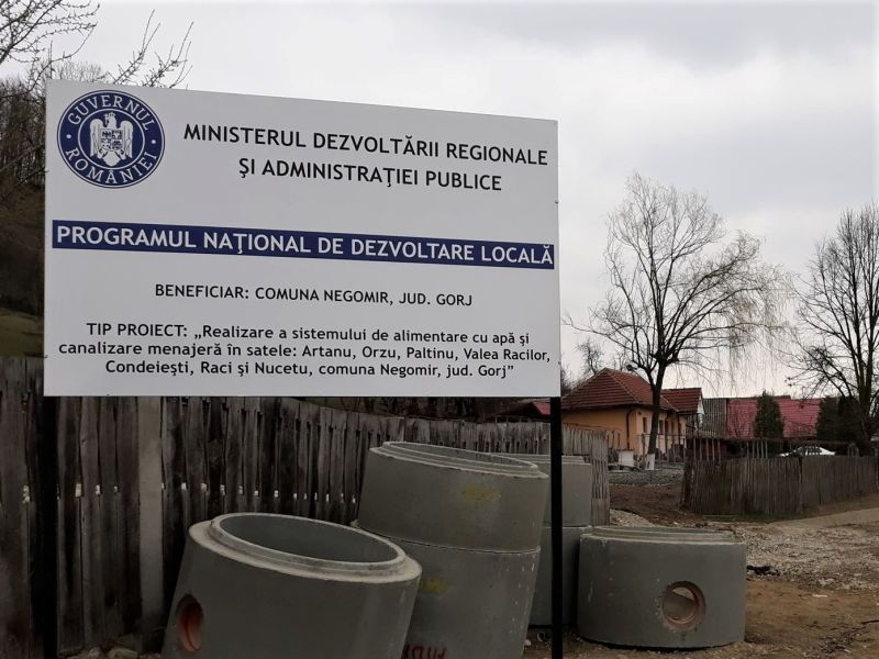 Însoțindu-l prin localitate, am putut observa la fața locului ce se face cu adevărat pentru modernizarea satelor negomirene, la ce alte proiecte de modernizare a satelor de pe Valea Jilțului Mic se gândește tânărul și performantul primar.După ce sistemul de alimentare cu apă și canalizare în satele Negomir și Ursoaia s-a realizat în procent de 90, actualmente se derulează proiectul de investiții ,,Realizarea sistemului de alimentare cu apă și canalizare menajeră în satele Artanu, Orzu, Platinu, Valea Racilor, Condiești, Raci și Nucetu”. Realizată cu finanțare prin Programul Național de dezvoltare locală, valoarea totală a investiției este de 19.455.176,17 lei, termenul de finalizare fiind 31 ianuarie 2020.