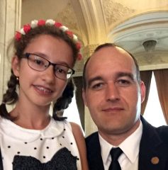 Din delegația de copii a făcut parte și fiica regretatului Severus Militaru, fost deputat de Gorj, cel care a fost inițiatorul acestui proiect prin care elevii pot vizita Parlamentul României.