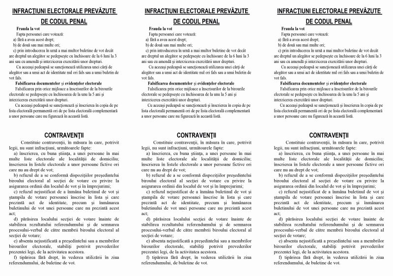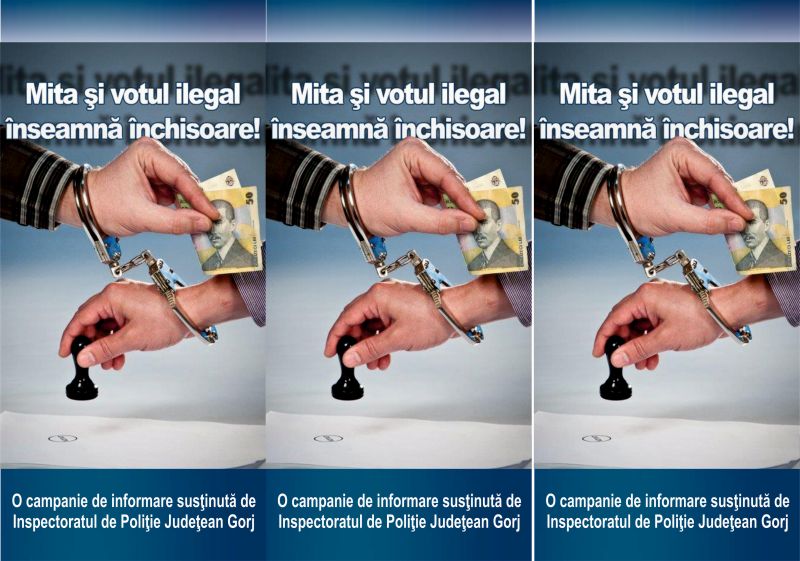 Oamenii legii avertizează că mita și votul ilegal înseamnă închisoare. Românii sunt aşteptaţi, în weekend, la referendumul de modificare a Constituţiei României pentru redefinirea familiei. Acesta se va desfăşura pe 6 şi 7 octombrie, între orele 7.00 – 21.00.