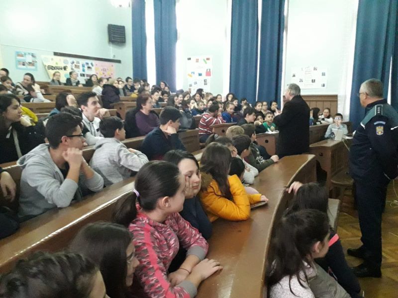 “În cadrul dezbaterilor şi discuţiilor purtate cu elevii unităţilor şcolare, poliţiştii de prevenire au subliniat importanţa educaţiei în formarea tinerilor şi dezvoltarea personală a acestora, atrăgând atenţia asupra modului de comportare în familie, la şcoală şi în societate, dar şi cu privire la modalităţile de petrecere a timpului liber, astfel încât tinerii să fie implicaţi în activităţi pozitive, de comunicare şi interacţiune personală.