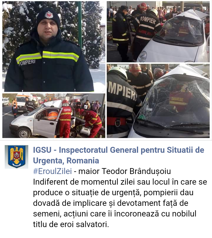Până la sosirea echipajelor, maior Teodor Brîndușoiu a decuplat bornele autoturismului implicat în accident, pentru a evita producerea unui incendiu. Totodată, împreună cu alte două cadre medicale aflate în trafic, a ajutat la stabilizarea victimei încarcerate până la sosirea echipajelor, păstrând permanent legătura cu dispeceratul.