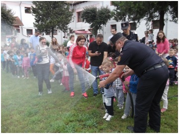 incendii, despre regulile de comportament în situaţii de risc, despre numărul unic de urgenţă 112, despre echipamentele utilizate la stingerea incendiilor. Copiii au luat casca pe cap și au îmbrăcat haina de protecție, au vizitat autospeciala, au urcat în cabina de unde se conduce mașina, au rotit volanul şi au pornit sirenele ca și cum ar merge la intervenții, iar unii au promis că atunci când vor fi mari se vor face pompieri. Chiar dacă sunt mici, copiii au demonstrat că sunt cunoscători în ceea ce priveşte cele mai importante reguli de prevenire a incendiilor. Prin această colaborare s-a dorit promovarea educației privind apărarea împotriva incendiilor, precum și formarea unor comportamente şi atitudini de tip preventiv în situaţii de risc, atât în rândul cadrelor didactice, cât şi a antepreşcolarilor/preşcolarilor şi a părinţilor acestora.