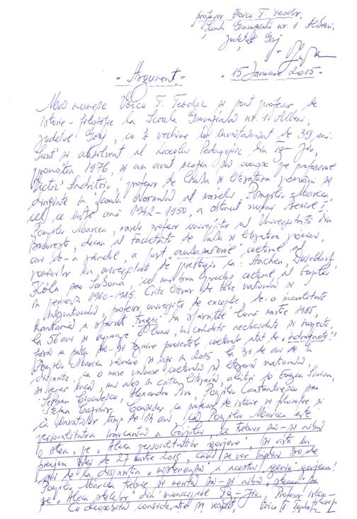 Mai multe cadre didactice din judeţul Gorj şi Bucureşti au făcut propuneri ca, pentru perpetuarea memoriei