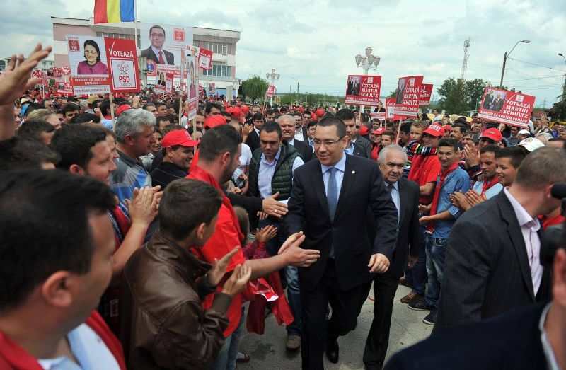 Participanţii la mitingul electoral de promovare a candidaţilor PSD la europarlamentare şi a candidatului Mihnea Costoiu la Colegiul 2 Senat, l-au aclamat la scenă deschisă pe premierul Victor Ponta, îndemnându-l prin urale să candideze la preşedinţie. “Eu sunt mândru că sunt român, dar să ştiţi că peste tot pe unde merg prin ţară eu spun că sunt mândru că sunt gorjean şi sunt mai mândru şi decât unii care s-au născut pe aici şi nu au făcut nimic bun. Îmi spunea cineva că nu o să putem să ne întâlnim la Rovinari, că va ploua, dar vremea ţine cu noi, dacă venea Băsescu sigur ploua şi nu mai venea că nu-i place apa, lui îi plac altele, nu apa. Dacă venea Crin Antonescu nu era problemă, că-l băgam aici în sală, că are şi el vreo zece liberali prin Gorj, încăpeau toţi în sală. Dacă venea Dan Diaconescu el zicea la televizor că nu plouă, chiar dacă ploua, că el e în stare. Gorjul şi România s-au împărţit între noi, cei care facem treabă, facem lucruri, încercăm să facem şcoli, spitale, drumuri, şi cealaltă parte din ce în ce mai mică, partea lui Băsescu, care ştie să ne înjure pe noi, să ne critice. Am salvat Complexul Energetic Oltenia, complex pe care oamenii lui Băsescu îl furaseră şi îl băgaseră în faliment. Vreau să continuăm drumurile, vreau să avem operele lui Brâncuşi în patrimoniul UNESCO”, a precizat Ponta, în aplauzele mulţimii. În acest context, Ponta a declarat că decizia de a candida la preşedinţia ţării o va lua alături de gorjeni: “Mă întreabă toată lumea în ţară dacă o să candidez la altă funcţie, funcţia de preşedinte, şi le spun tuturor că am nevoie de sprijinul lor, dar în primul rând vreau să ştiu dacă mă susţin gorjenii mei pentru asta. Întotdeauna o să vin să vă întreb pe dumneavoastră şi o să luăm deciziile împreună. În 2014 vreau noi să fim la preşedinţie şi Băsescu la …” iar oamenii prezenţi la miting au completat: “puşcărie”.