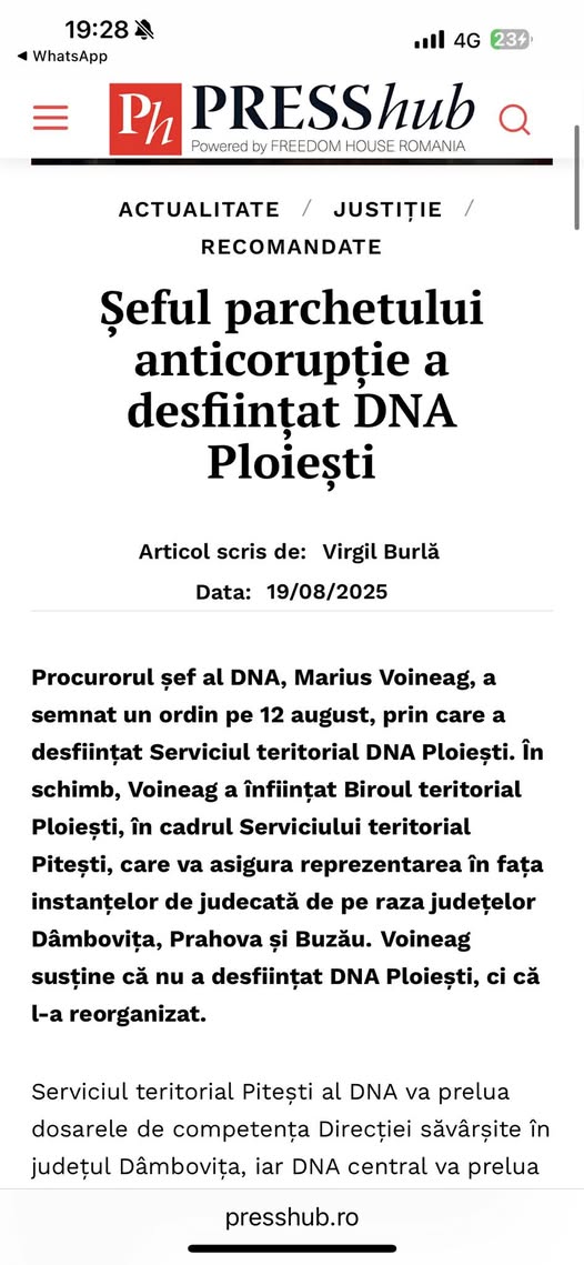 Șeful DNA a afirmat, pentru PressHub, că ”Acolo, de ani de zile, nu funcționau lucrurile. Procurorul pe care l-am trimis s-a pensionat imediat când a văzut ce e acolo. Oamenii nu vor să meargă la Ploiești. A fost reorganizare, cum a fost și la Târgu Mureș. Acolo unde s-au făcut reorganizări, lucrurile au funcționat. Cum a fost la Constanța, de exemplu”, potrivit Știri pe surse.ro.