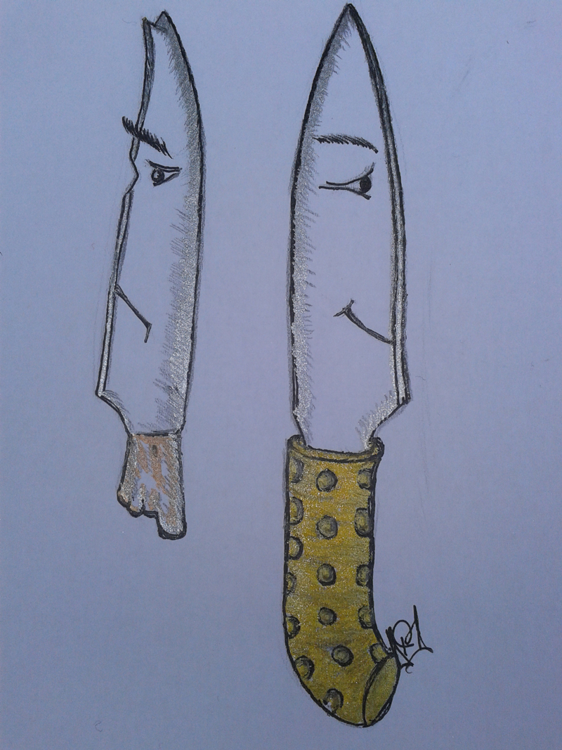 În câteva zile, rugina dispăruse, lama devenise tăioasă și cuțitul primi un nou mâner, din lemn sculptat…