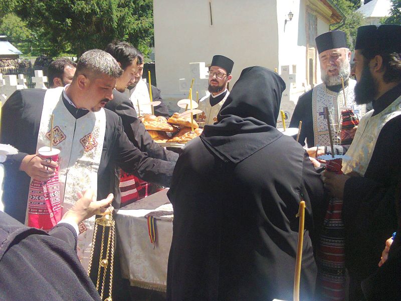 Ceremonia de pomenire a continuat la mormântul din incinta mănăstirii, unde s-a încheiat procesiunea practicilor liturgice prilejuite de acest eveniment. În final, cei prezenţi au fost invitaţi la masă în trapeza cea mare a mănăstirii, de către Părintele slujitor al altarului şi de către obştea de maici ostenitoare ale sfântului lăcaş, păstorite de către Maica Stareţă, Monahia Spiridona, dar, şi pentru a aprinde o lumânare de cinstire întru pomenirea sufletului Maicii Stareţe Evghenia Stavrofora.