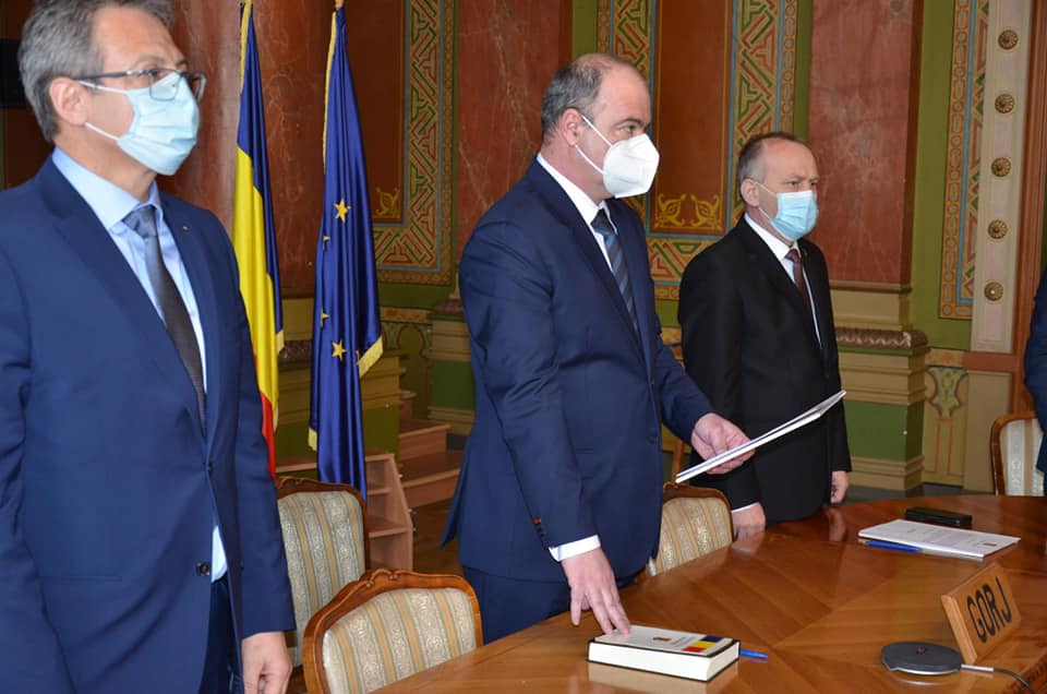 Prefectura Gorj are de astăzi o nouă conducere. Prefectul USR Corneliu Răducan Morega și subprefecții Virgil Drăgușin și Marcel Petrică Iacobescu, susținuți de PNL, au depus astăzi jurământul de învestire.